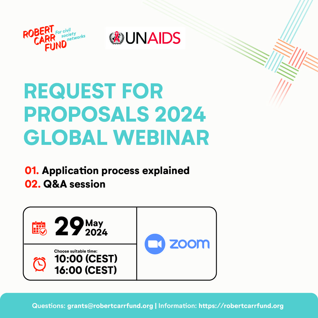 The Robert Carr Fund in collaboration with UNAIDS and the Global Fund to Fight AIDS, TB and Malaria conducted a series of global and regional webinars to introduce the funding priorities and eligibility as well as other aspects of the Request for Proposals 2024.